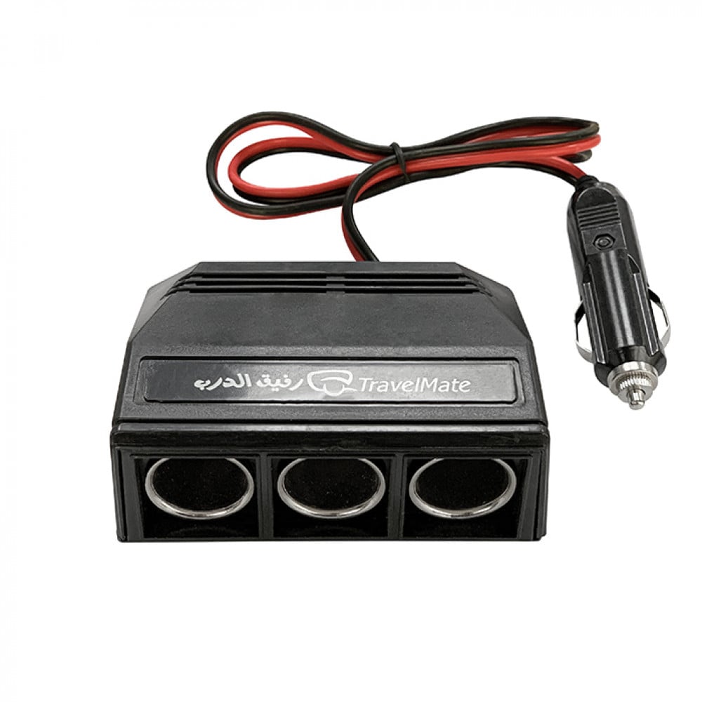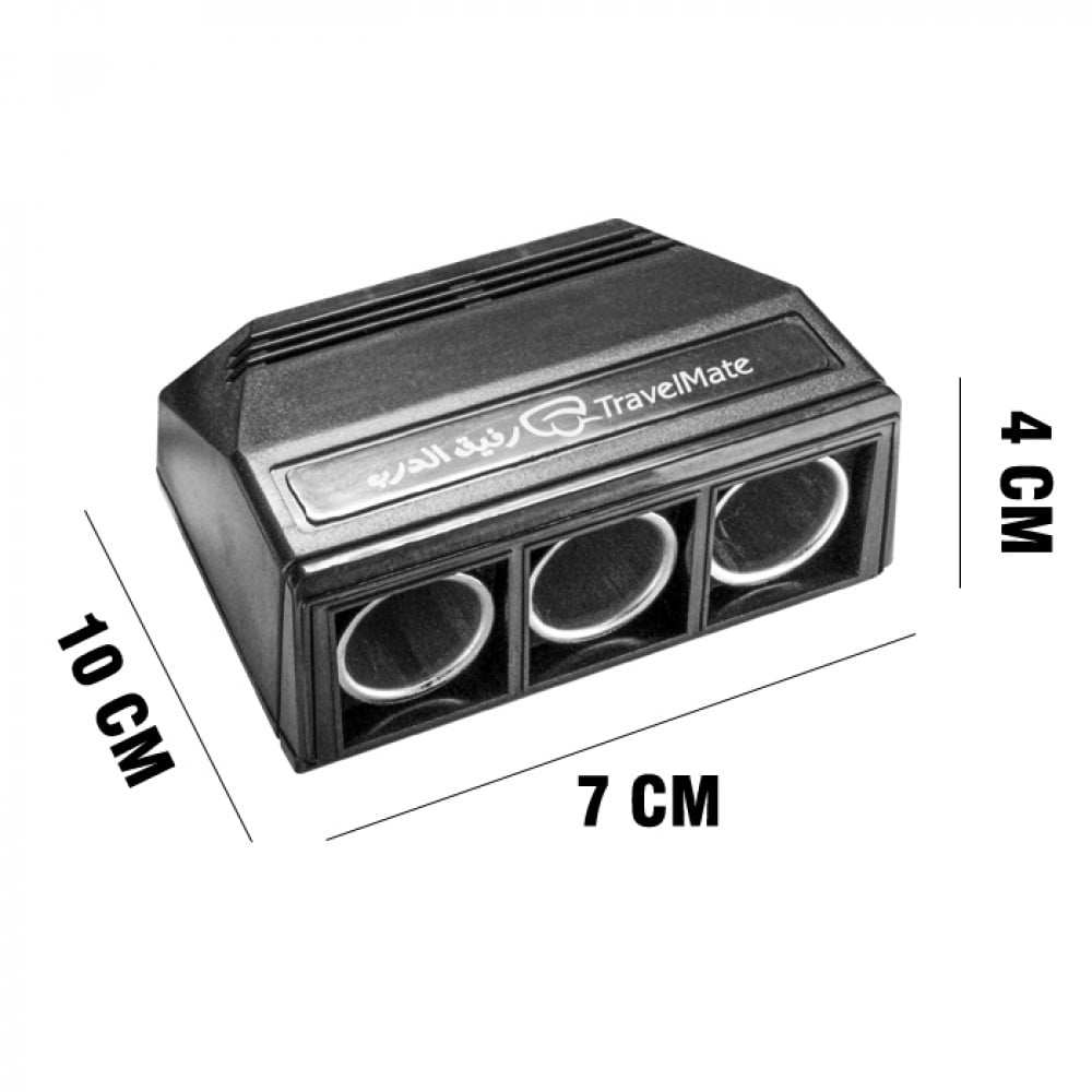 بريزة ولاعة بثلاث مخارج بسلك متين لتحمل التيار العالي لها قاعدة منفصلة يتم تثبيتها ثم انزلاق العلبة عليها .